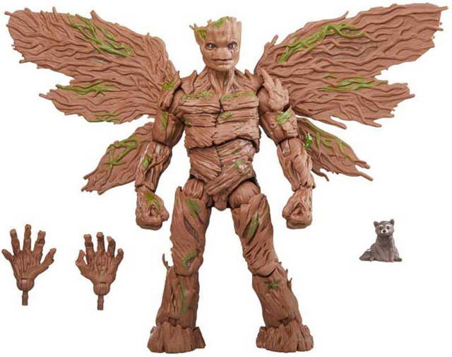Grown into a more mature tree, Groot uses his new body changes and more advanced skills to help build Knowhere and protect his family. This collectible 6-inch-scale Marvel Legends figure is detailed to look like the Groot character from Marvel Studios’ Guardians of the Galaxy Vol. 3, featuring premium detail, multiple points of articulation, and 4 movie-inspired accessories including a Baby Rocket figure. With over 80 years of entertainment history, Marvel has become a cornerstone of fan collections around the world. With the Marvel Legends Series, fan favorite Marvel Comic Universe and Marvel Cinematic Universe characters are designed with premium detail and articulation for posing and display in collections. From figures to vehicles to premium roleplay items, the Marvel Legends Series offers elite character-inspired products for Marvel fans and collectors.